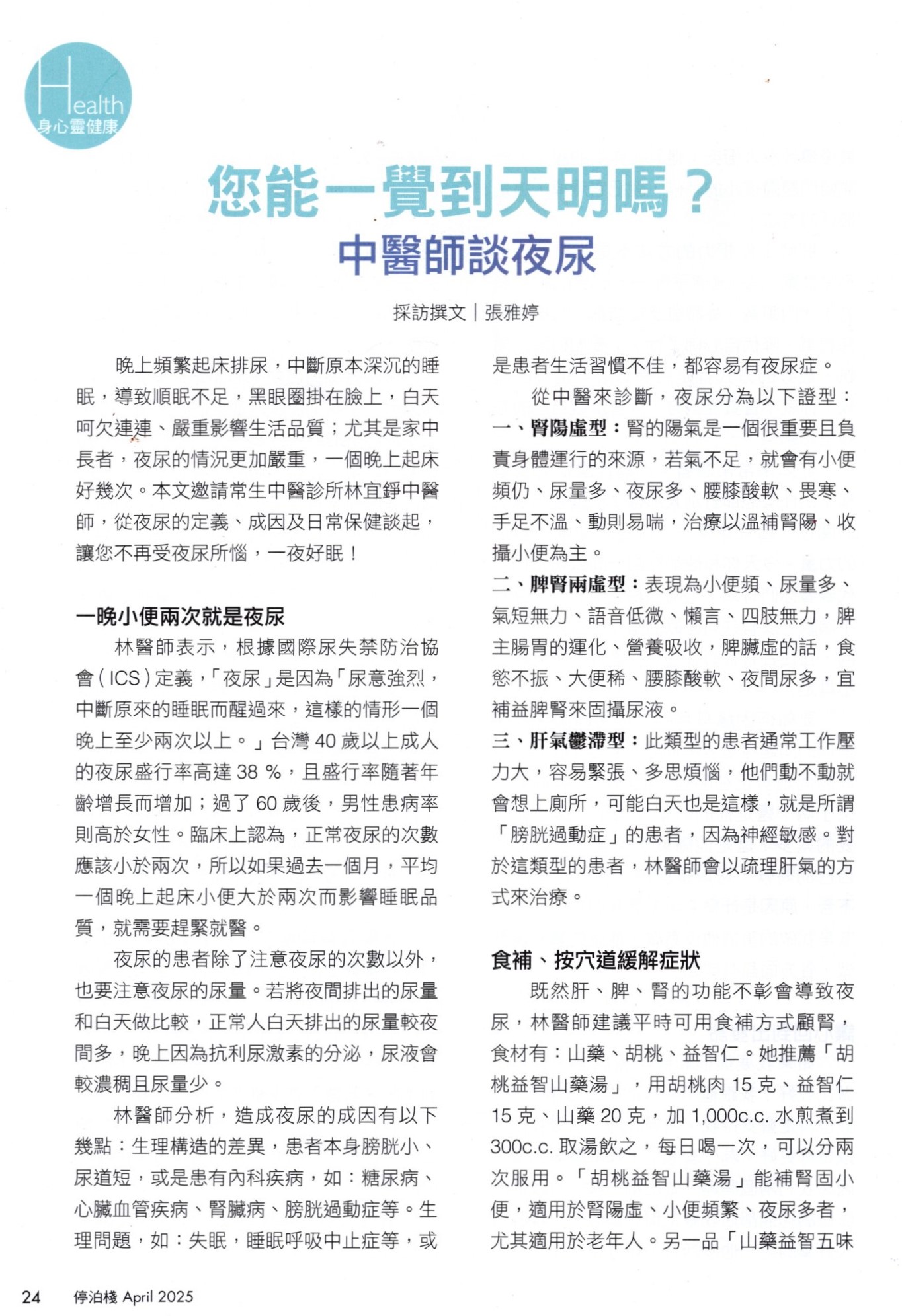 你能一覺到天明嗎?中醫談夜尿