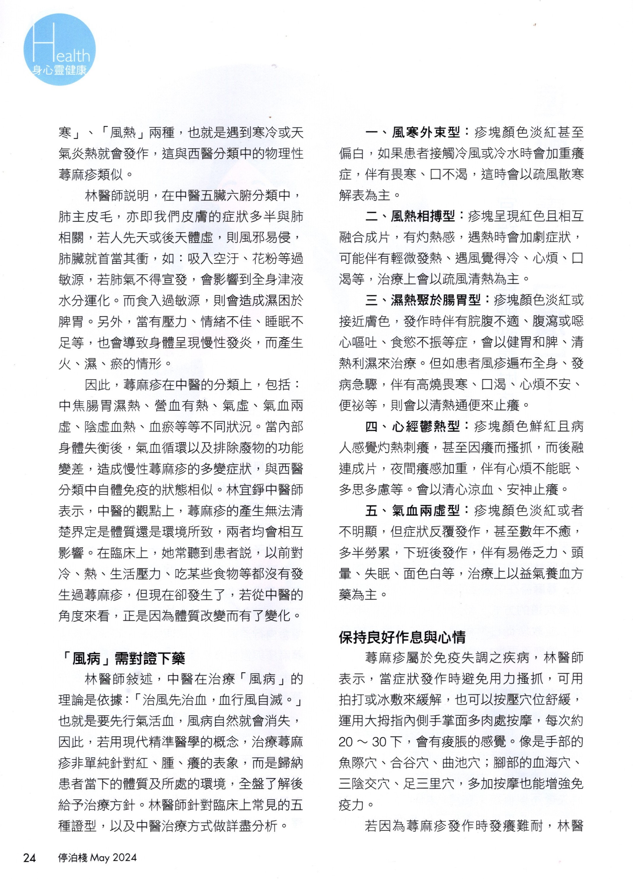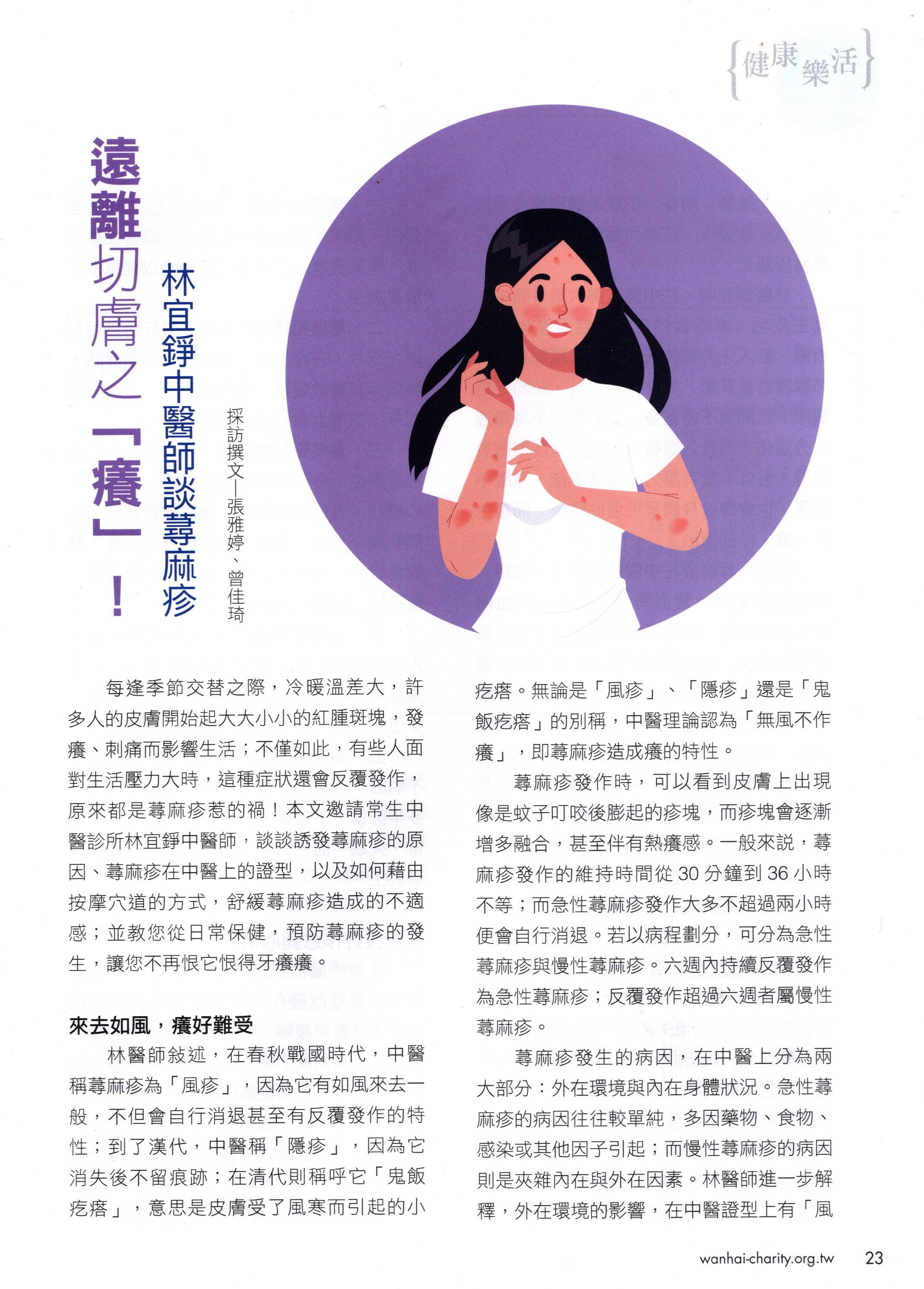 遠離切膚之癢! 林宜錚中醫師談蕁麻疹